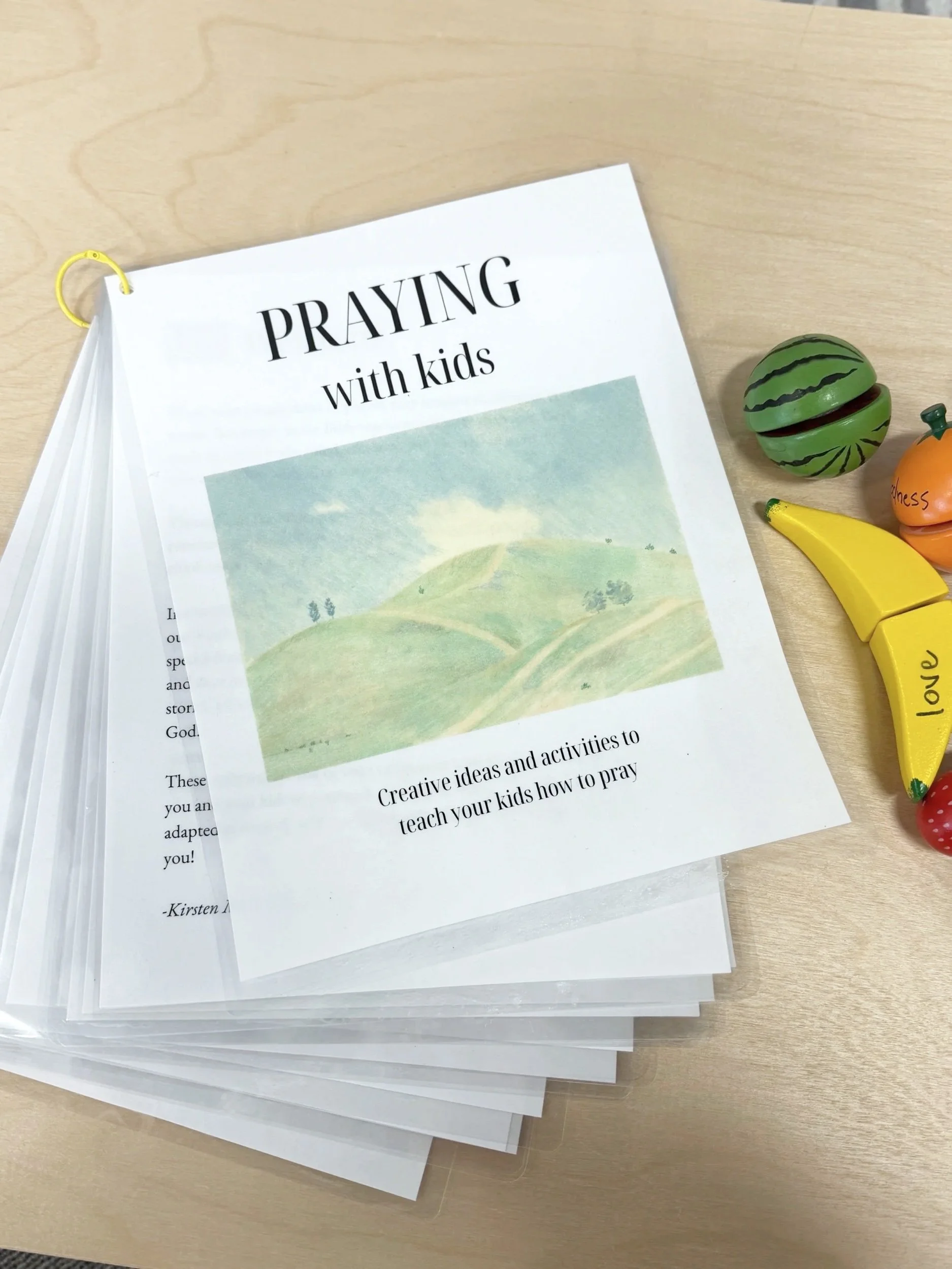 One of the biggest barriers for parents is not knowing what to do once they are in the space. To help with this, we created a free printable prayer guide and editable Canva template designed specifically for kids prayer corners. The guide includes simple prayer ideas that pair with common toys and activities.